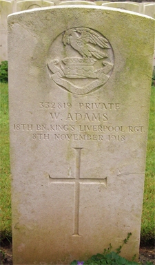 William Adams was born in Liverpool on the 26th January 1882 the son of Peter Edwin Adams and his wife Rose Ann (nee Whalley). He was baptised at St Timothy, Everton on the 19th February 1882. His parents married at All Saints Church in 1880