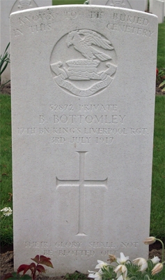 He enlisted in Liverpool and was serving in the 17th Battalion, The King’s Liverpool Regiment as Private No 52872 when he died of wounds on the 03rd July, 1917 aged 27.