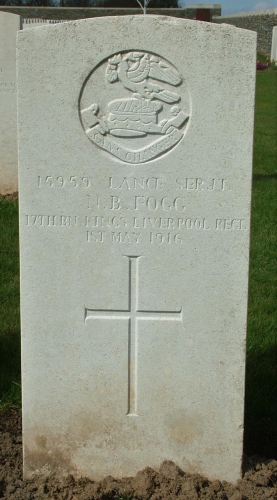 "We regret to state that Sergeant Neville Brooks Fogg, King's (Liverpool Regiment) has been killed in action in France. Sergt Fogg, who was in his 33rd year was a son of the late Mr and Mrs Nathaniel B Fogg, who resided for many years in Birkdale".